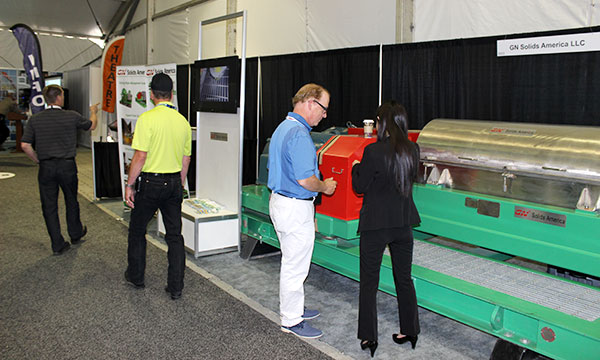 展會上很多客戶對我們的22英寸的離心機(jī)表示出了強(qiáng)烈的興趣。我們離心機(jī)的轉(zhuǎn)鼓主要部件由2205雙相不銹鋼離心澆鑄而成,其他部件由316L不銹鋼制作而成。轉(zhuǎn)鼓里的螺旋推進(jìn)器鑲嵌了超過4mm的耐磨合金片,能夠有效提高使用壽命。為了滿足加拿大市場所要求的CSA標(biāo)準(zhǔn),我們展會離心機(jī)配備了符合CSA防爆標(biāo)準(zhǔn)的電機(jī)(125HP和50HP)以及變頻控制柜。從技術(shù)規(guī)格上來說,冠能的GNLW553-VFD離心機(jī)與市場上使用廣的Alfa Laval Lynx 40相當(dāng),并且已經(jīng)在石油天然氣鉆井固控系統(tǒng)、鉆井廢棄物處理以及隧道盾構(gòu)和淤泥處理等行業(yè)得到了廣泛的應(yīng)用。