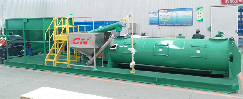1、鉆屑儲料漏斗接收待處理的鉆屑和泥漿廢棄物,通過螺旋送料機(jī)按照預(yù)先設(shè)定的輸送量輸送到固化攪拌機(jī)中去。