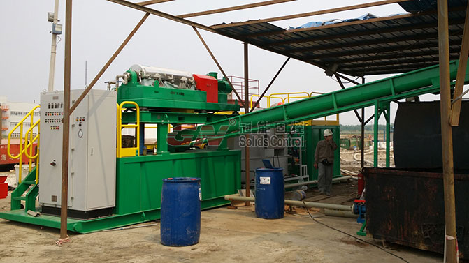 冠能離心機(jī)通過(guò)化學(xué)絮凝處理中海油油基污泥現(xiàn)場(chǎng)視頻